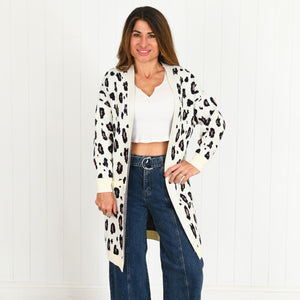 "Amanda" Winter White & Leopard Print Longline Cardigan - Love Lola