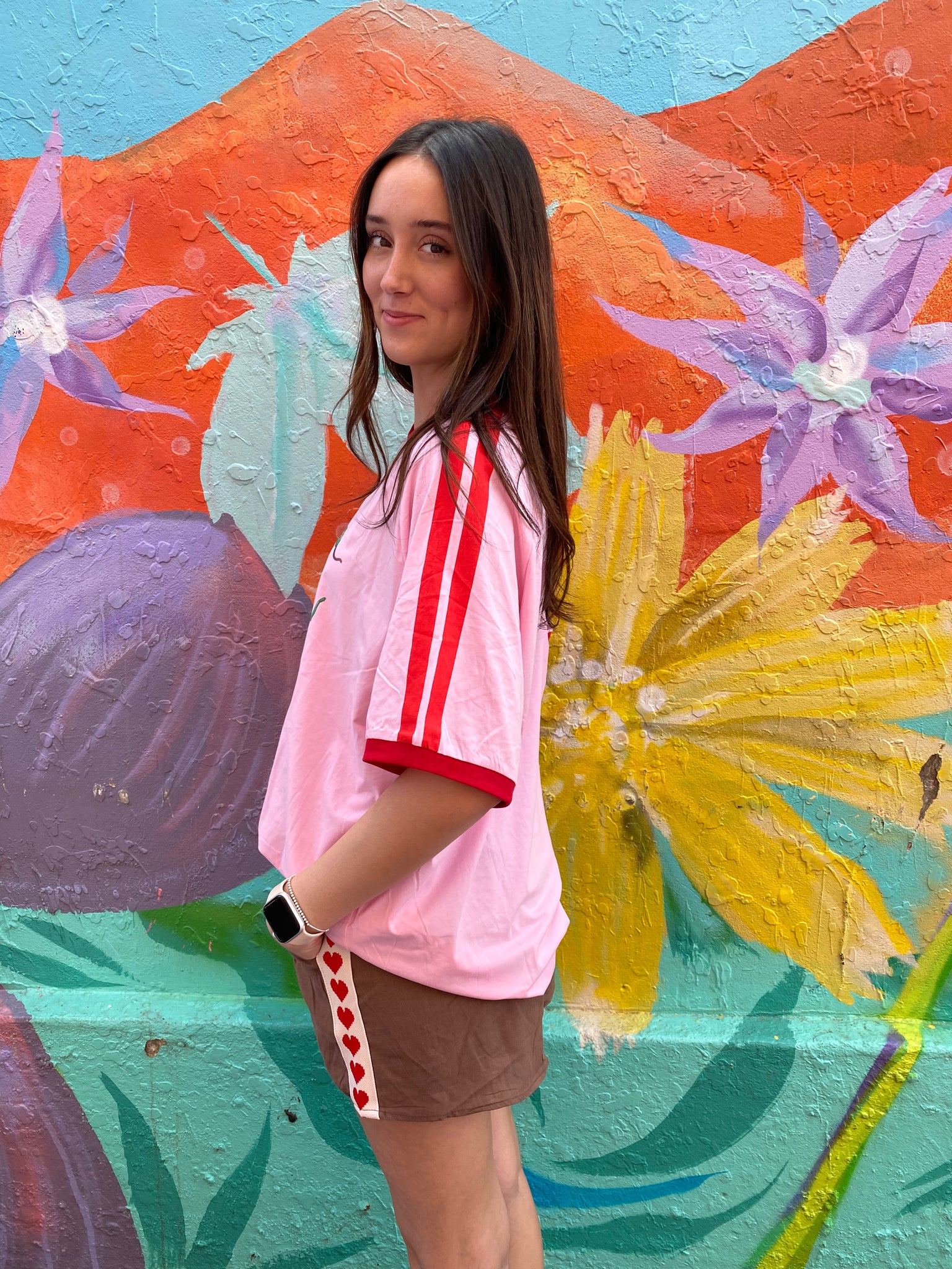 • Relaxed fitting shorts with elastic waist, side pockets and heart racer stripe