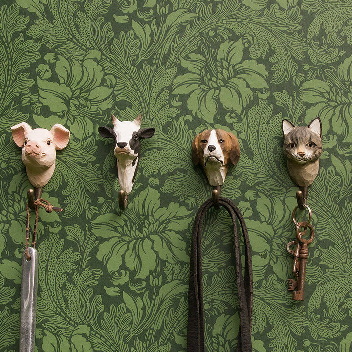 Each Wildlife Garden sturdy metal DecoHook is decorated with a linden wood animal head, hand carved, individually brush-painted and unique. Your favourite animals become functional decorations for the hallway, bedroom, kitchen, bathroom, shed, stable or barn.