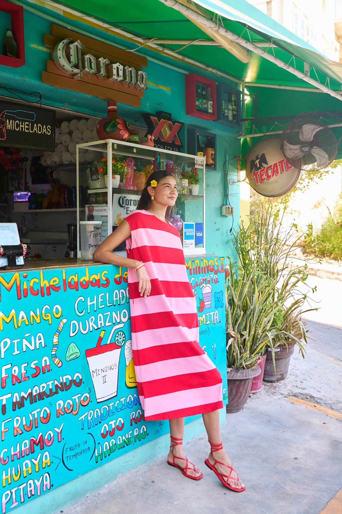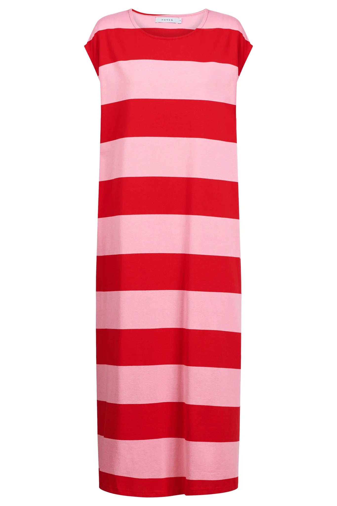 Jardin Stripe T-Shirt Dress in Garnet by Haven.