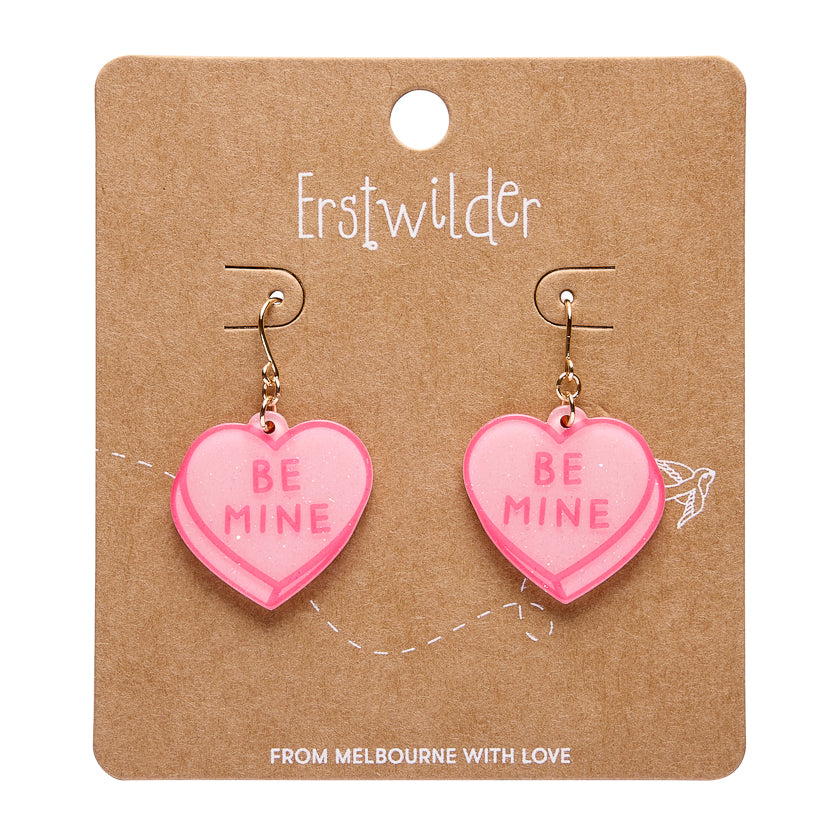 Pink Candy Heart Drop Earrings - Erstwilder Sweet Valentine Collection.