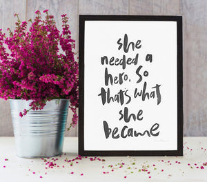 "She Needed a Hero, so that's what She Became" - Hand Painted Artwork