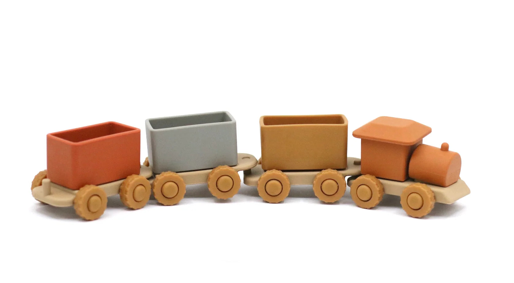 Little Drop's Silicone Train Set - the perfect companion for your little one's early adventures. Crafted with care from safe, soft silicone, these toys are designed to stimulate sensory development and fine motor skills.