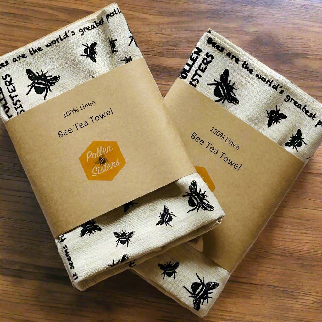 Bring natural elegance to your kitchen with this premium linen tea towel, featuring an enchanting bee design.
