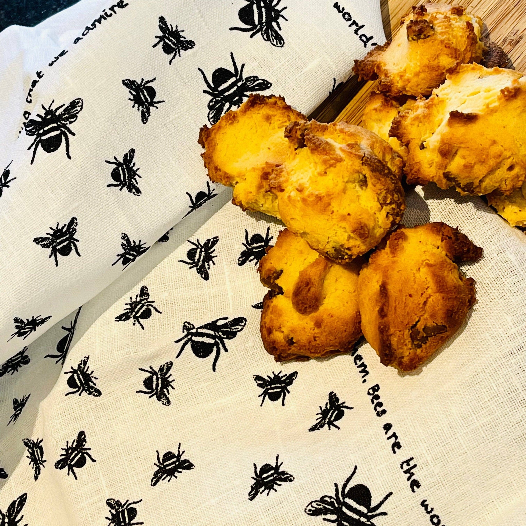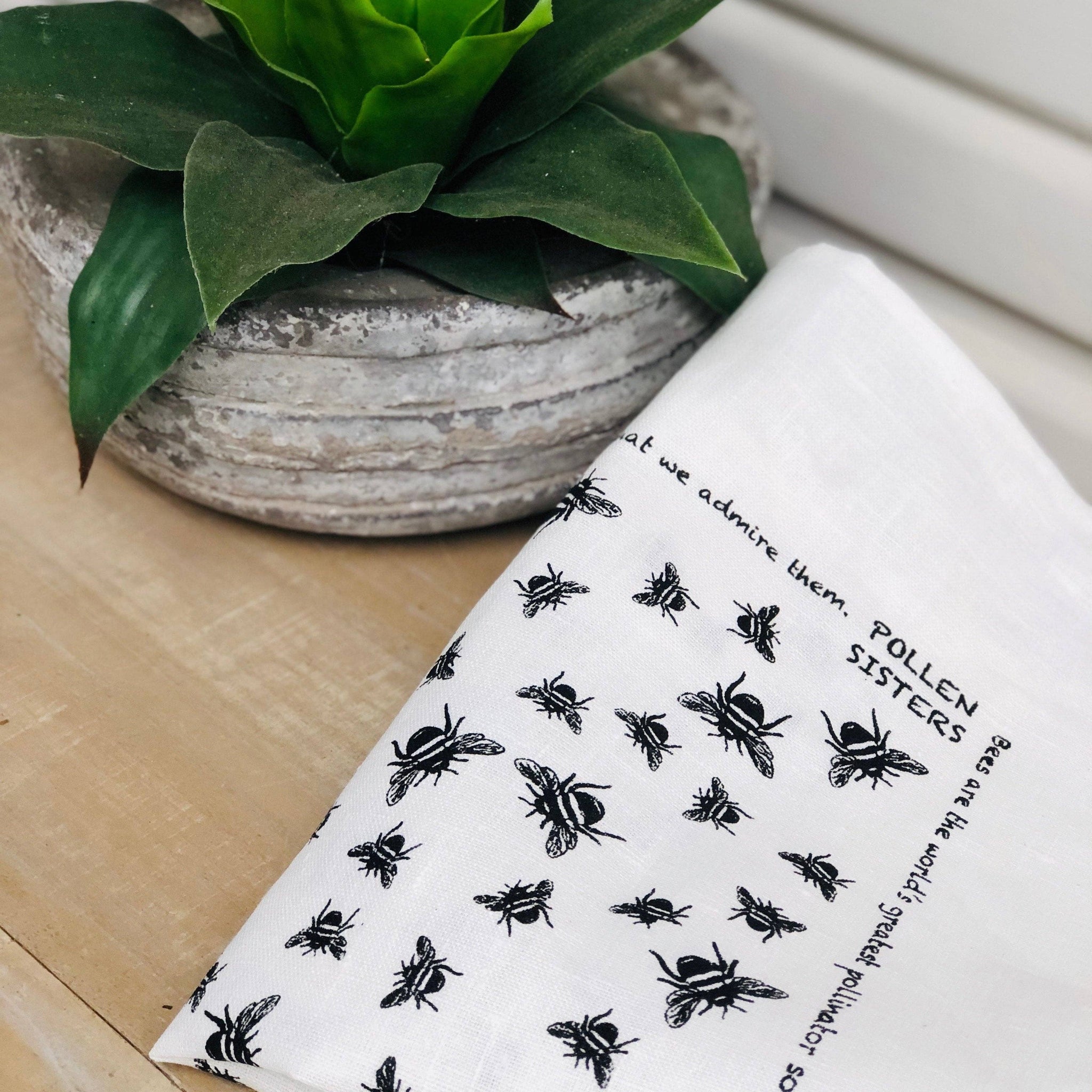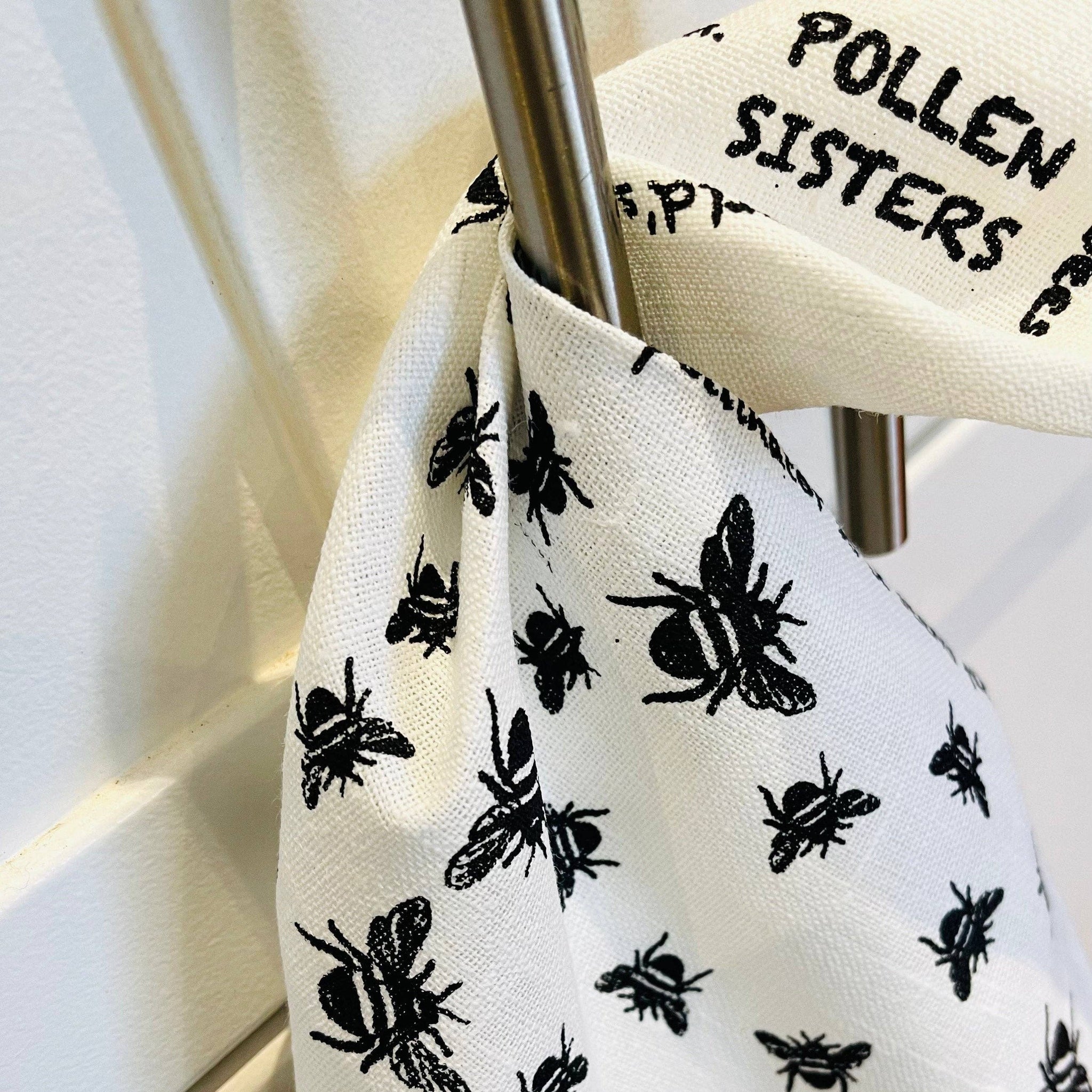 This charming linen tea towel features a delightful bee motif that brings nature-inspired style to your kitchen.