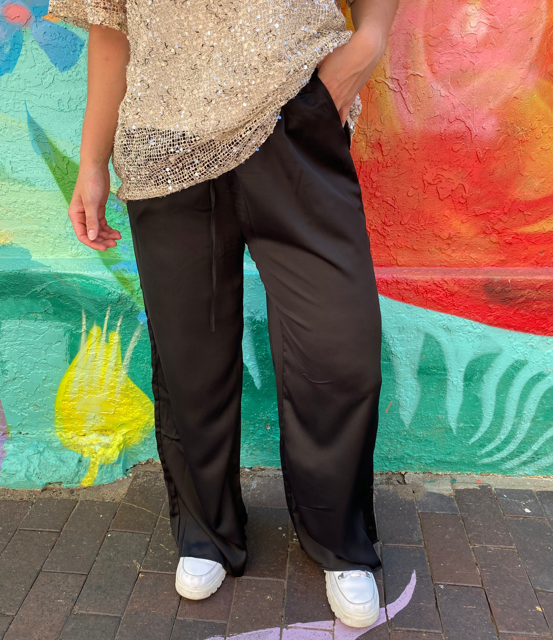 These black satin pants from By Frankie are stylish yet so comfortable!