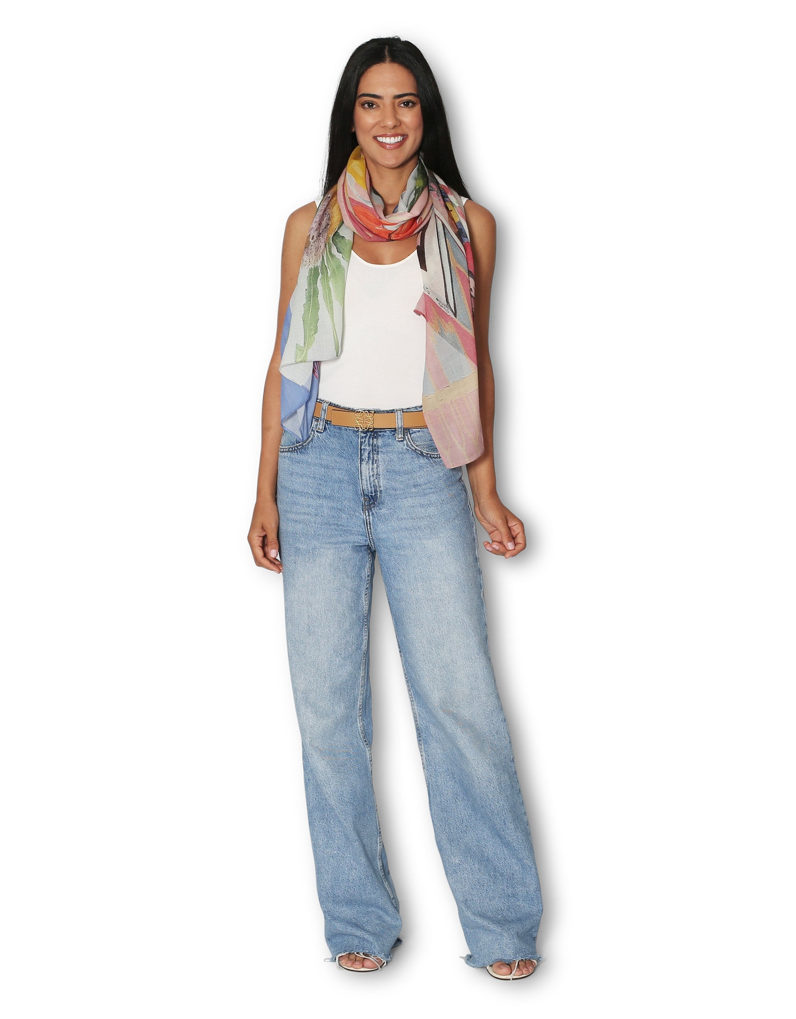 Made from 100% pure wool and sized at 200 x 70cm, this generous piece transforms any ensemble with its joyful, artistic flair.