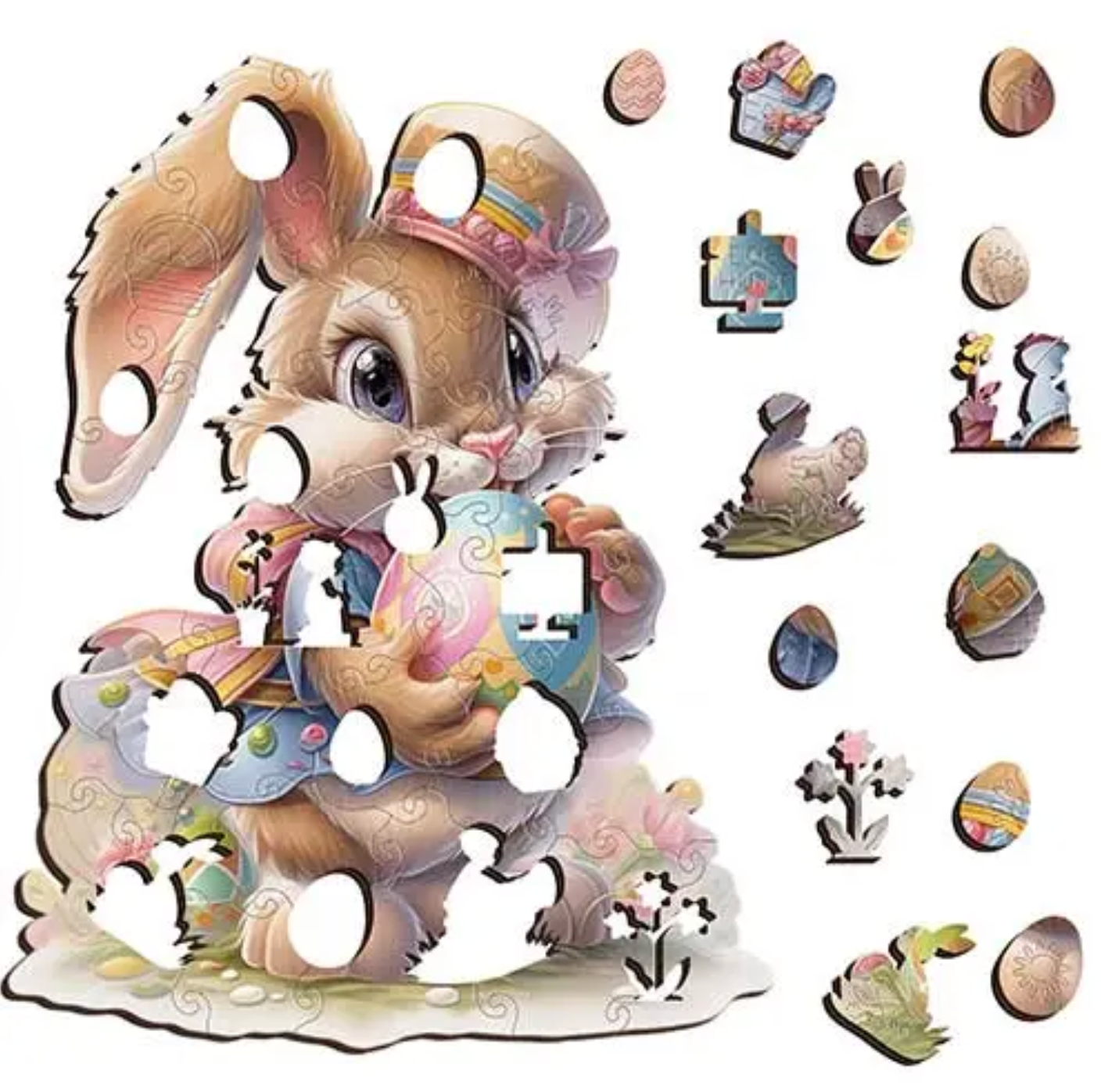 Embark on an Easter adventure with our Bunny's Egg Hunt puzzle, specially crafted for children with larger pieces and adorable character cuts. Follow the cute bunny as she dashes away with an Easter egg, adding a delightful touch to the holiday festivities.