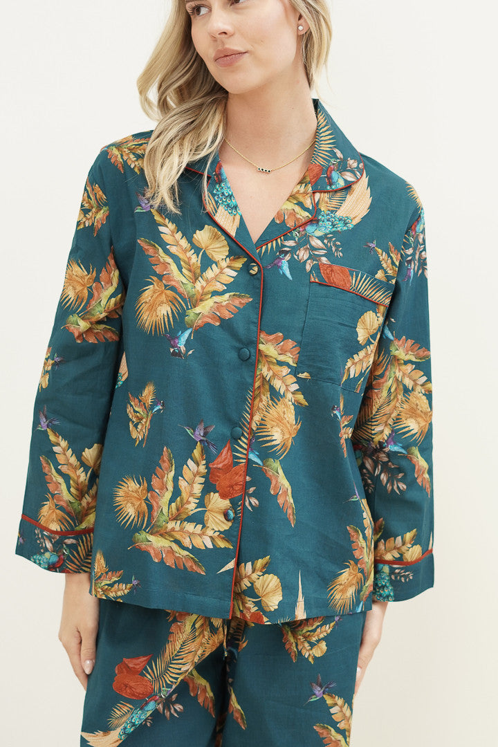 Add a touch of classic elegance to your sleepwear collection with this beautiful and lightweight pyjama set.