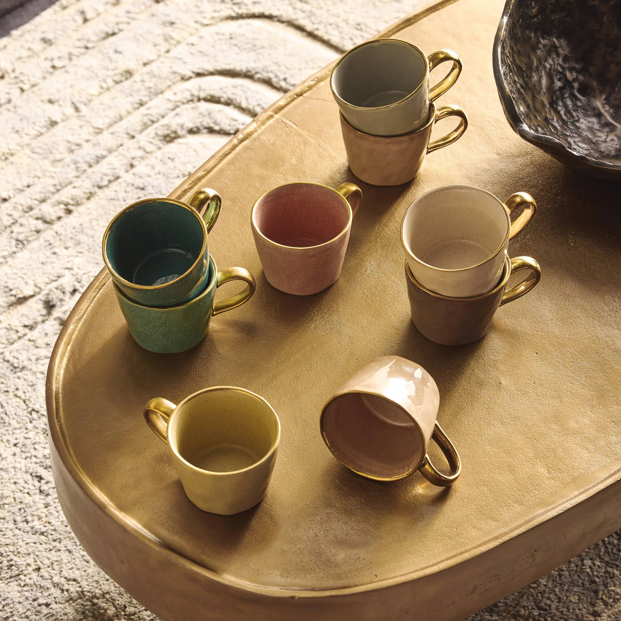 Our exclusive range of beautiful Ariel mugs has amassed a loyal cult following and continues to sell out time and again. They have been handmade and glazed in a reactive glaze in different colours and gilded with gold around the rim and the handle.