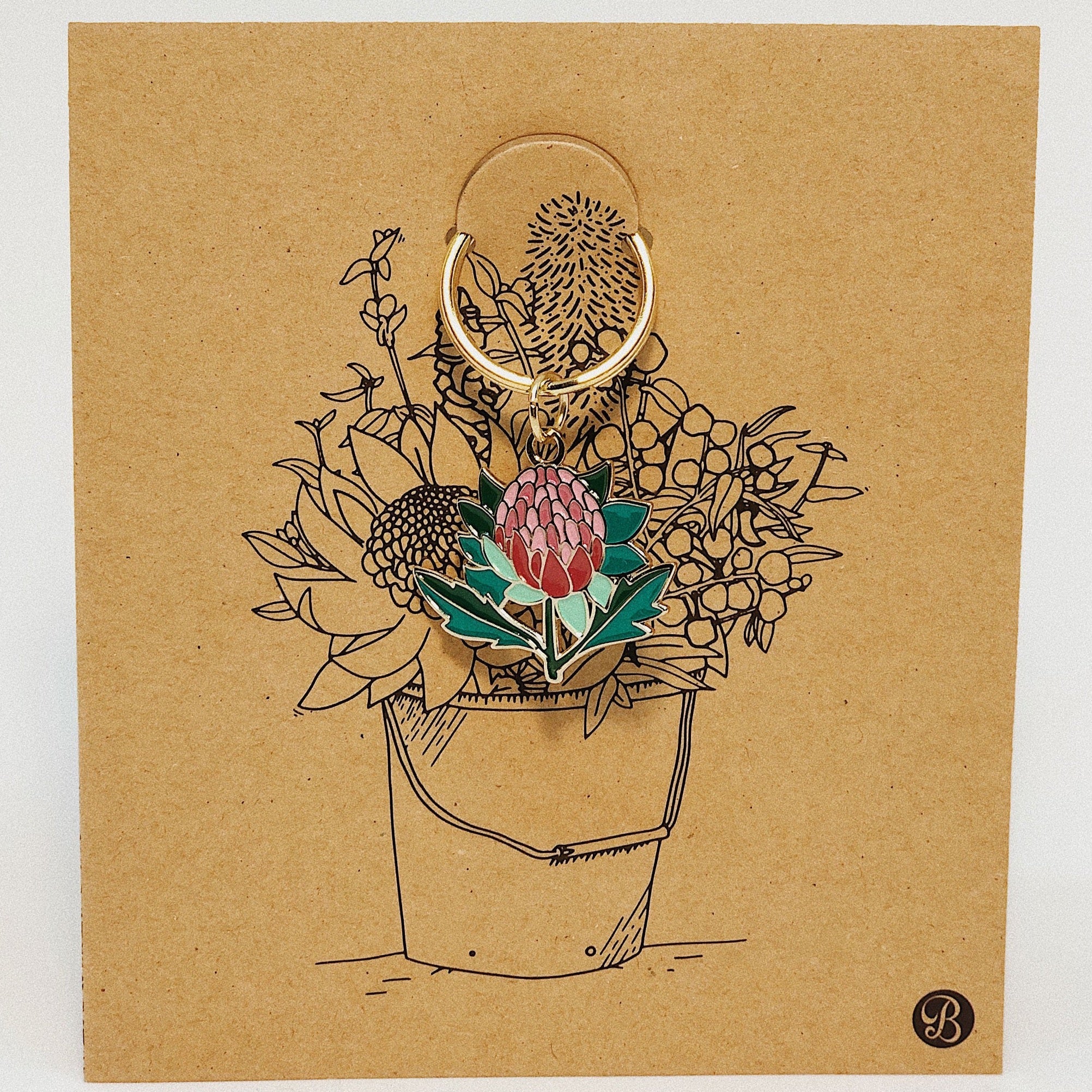 The key ring is finished with a high quality vibrant enamel colour. Native Australia Gift Cards are available with a Wattle or Waratah Keyring (while stock lasts).