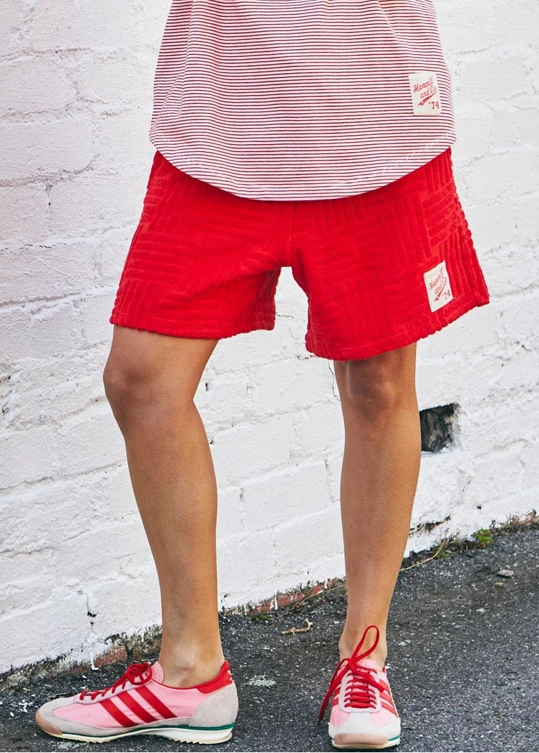These shorts are pure chill vibes. Made from super-soft towelling fabric, they’ve got a bold textured pattern that gives them a bit of edge.