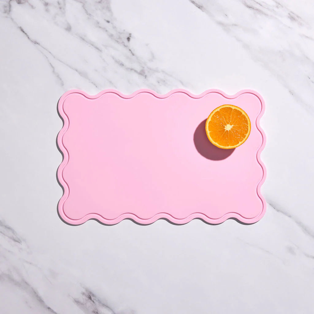 Elevated, plastic-free silicone boards with a wavy spill edge. Set of 2 (solid + swirl)