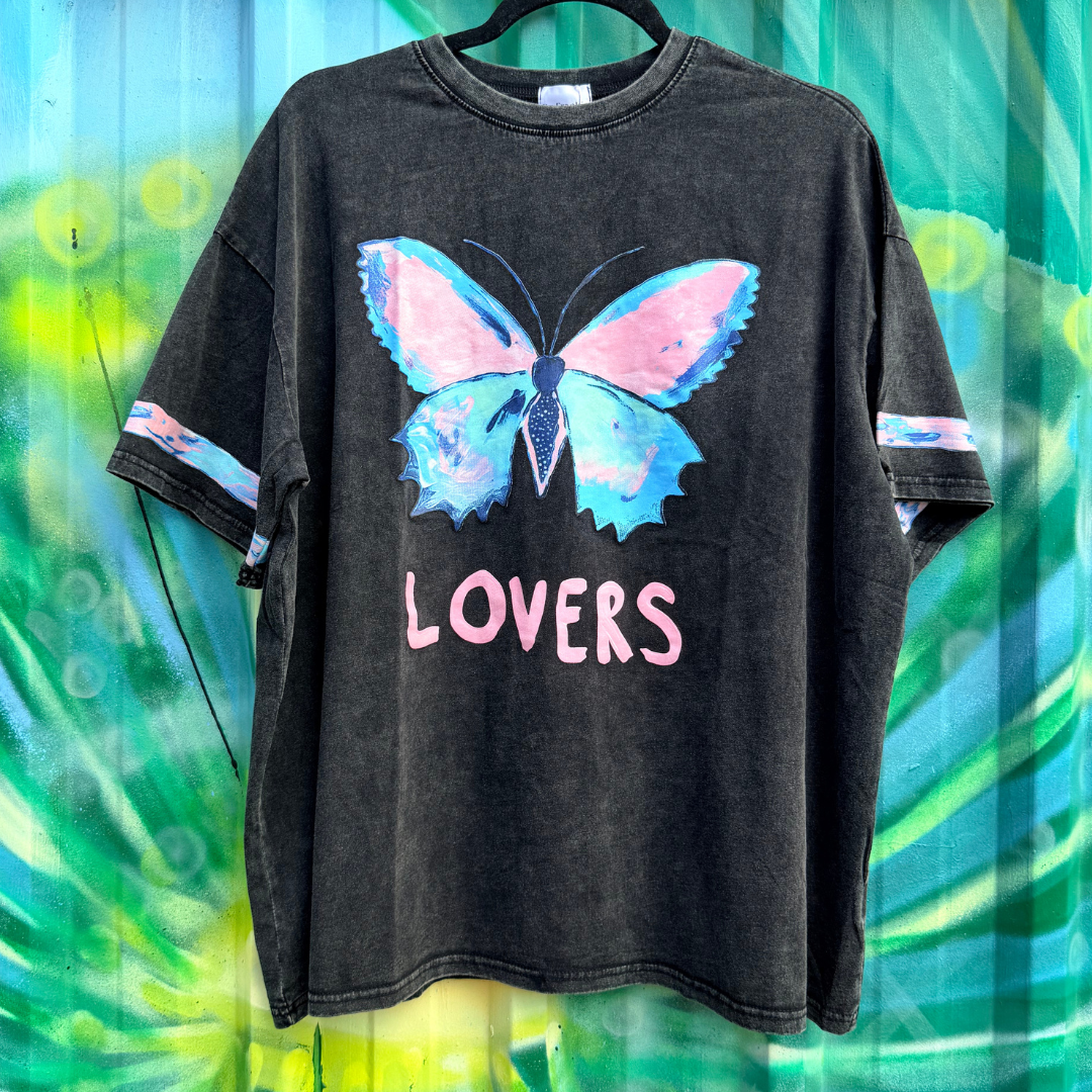 This fab tee from By Frankie is sure to be a new fave! With a hand-painted butterfly graphic & the text 'Lovers', it's perfect for hitting the shops and date nights alike.