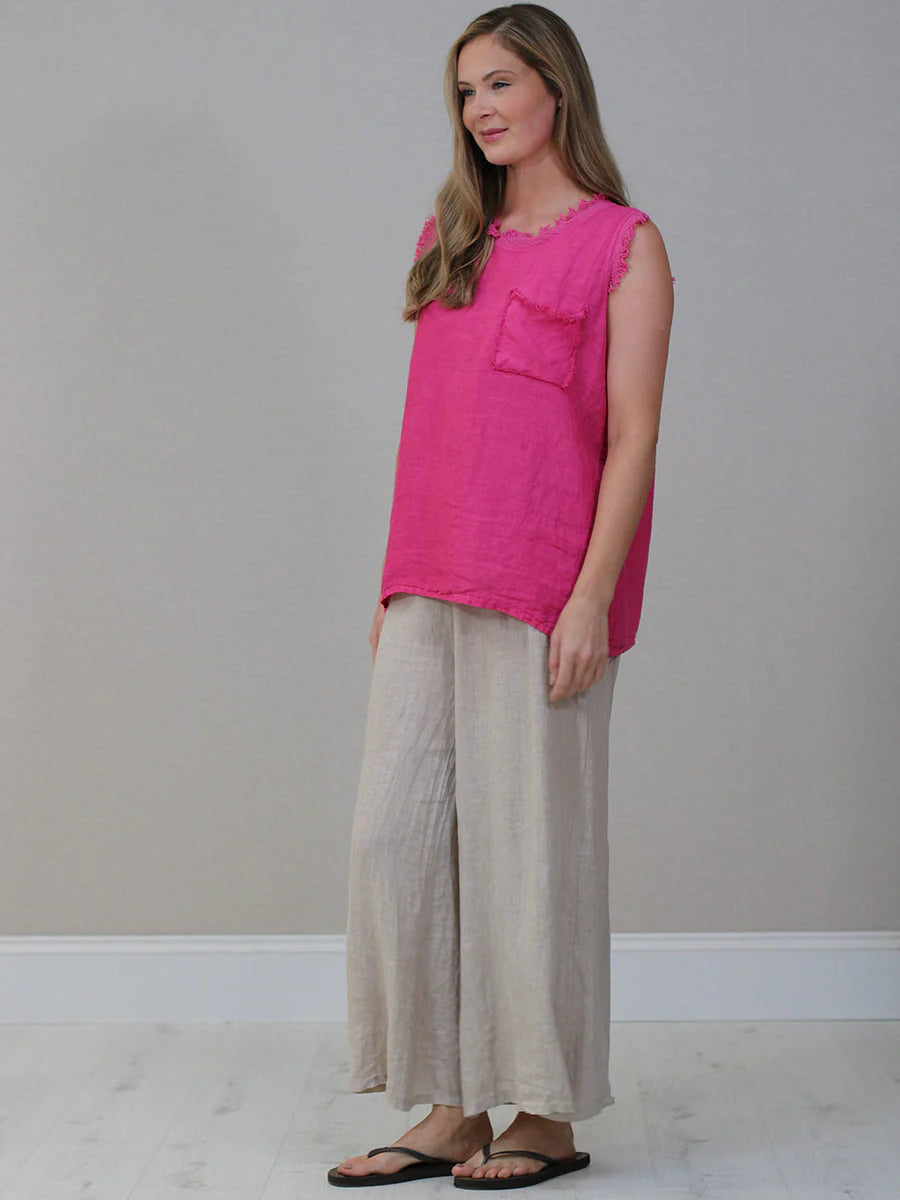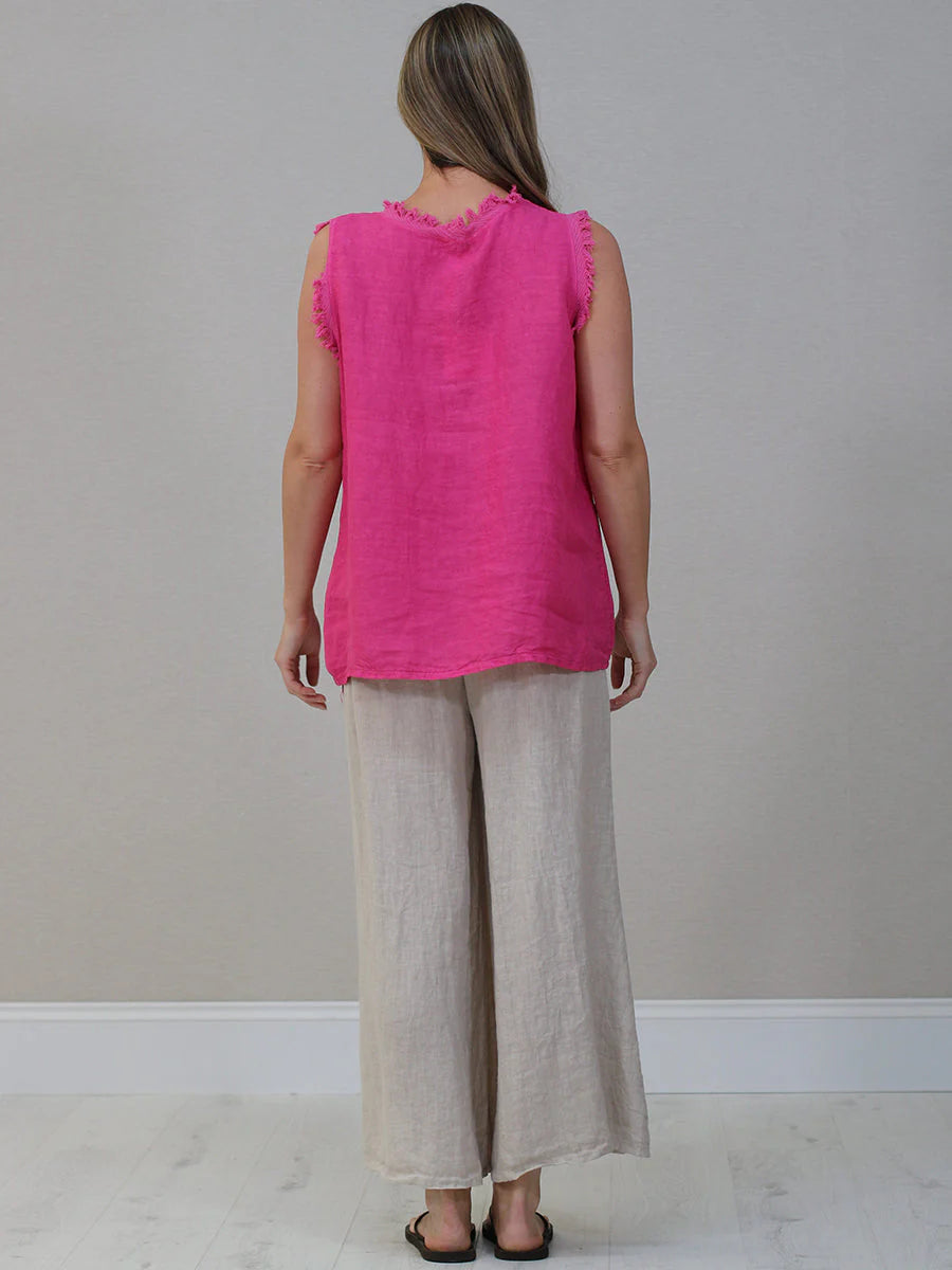 Make a statement this season with our vibrant fuchsia linen top, where Italian craftsmanship meets modern edge.